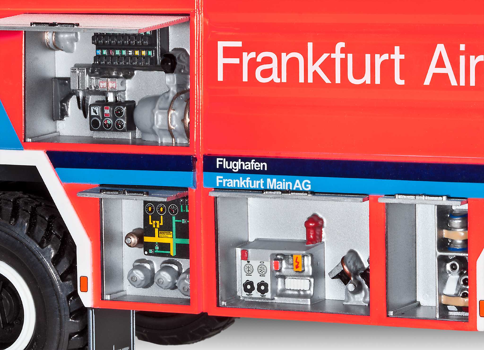 Toto vozidlo nejede k ohnisku požáru. Převaluje se přes něj. GLFL Simba 8x8 je těžká váha se speciálním posláním: hasičský vůz pro velká letiště. V měřítku 1:24 můžete jako model vynést na silnici přes 45 tun provozní hmoty - včetně pěnového vodního děla a pohyblivých dveří řidiče.